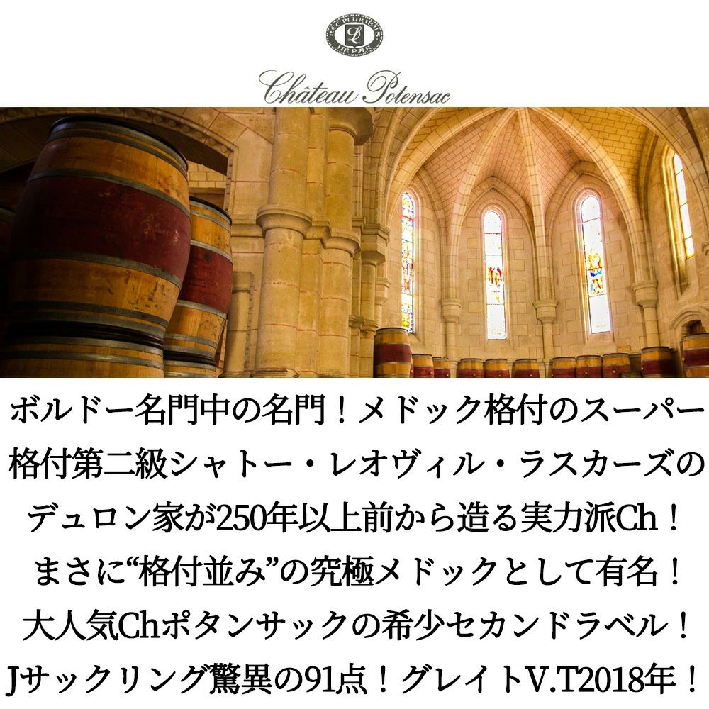 他の画像を見る シャペル ド ポタンサック 2018 AOCメドック (シャトー ポタンサックのセカンドラベル) (デュロン家) 元詰 飲み頃8年熟成Chapelle de Potensac 2018 AOC Medoc (Cru Bourgeois) 赤ワイン フランス フルボディ 辛口 当店特別価格 ¥ 2,706 税込 カートに入れる お気に入りに登録する