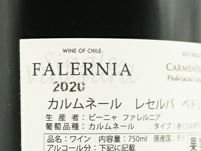 他の画像を見る ファレルニア カルムネール レセルバ ペドリスカル シングル ヴィンヤード 2020 D.Oエルキ ヴァレー ビーニャ ファレルニア元詰FALERNIA Carmenere Reserva Pedriscal Single Vineyard 赤ワイン チリ フルボディ 辛口 当店特別価格 ¥ 2,340 税込 カートに入れる お気に入りに登録する