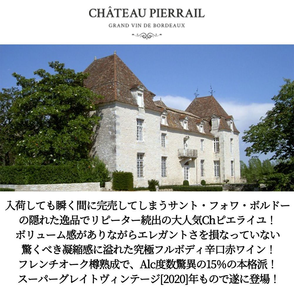 他の画像を見る シャトー ピエライユ 2020 シャトー元詰(ドモンショー家) AOCボルドー スペリュール HVE コンクール ド ボルドー金賞受賞 15%Chateau Pierrail Rouge 2020 AOC Bordeaux Superieur 赤ワイン フランス フルボディ 辛口 当店特別価格 ¥ 2,382 税込 カートに入れる お気に入りに登録する