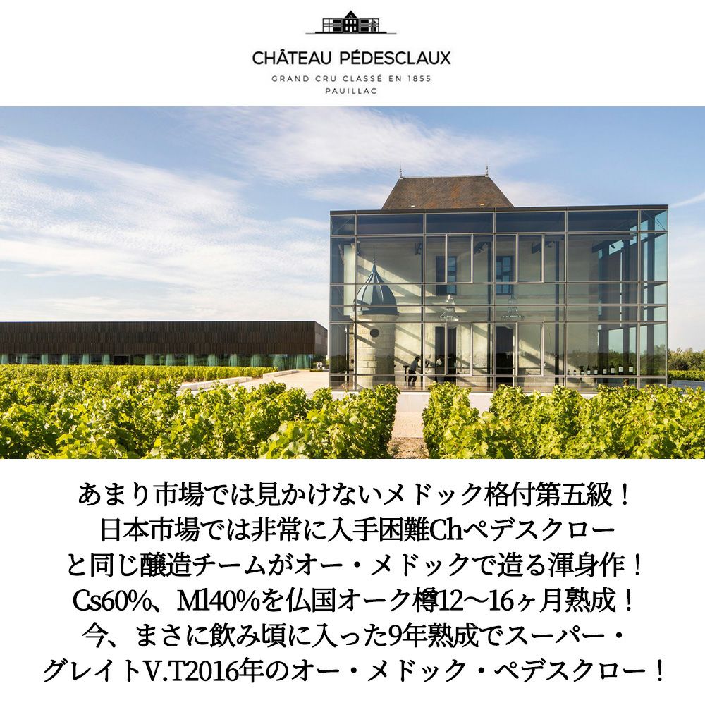 他の画像を見る オー メドック ペデスクロー 2016 メドック格付け第5級ペデスクローが造るオー メドックワイン AOCオー メドックHaut Medoc Pedesclaux 2016 AOC Haut Medoc 赤ワイン フランス フルボディ 辛口 当店特別価格 ¥ 2,810 税込 カートに入れる お気に入りに登録する