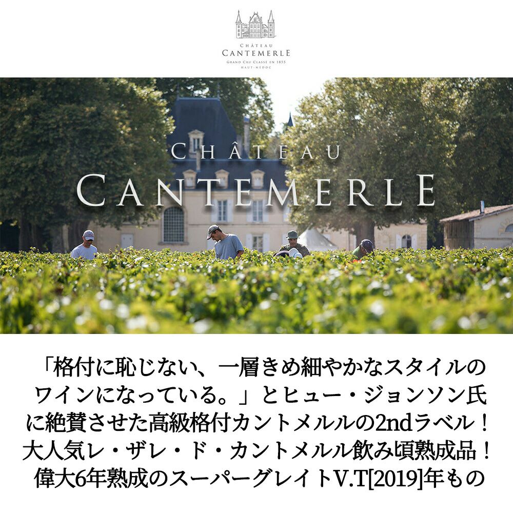 他の画像を見る レ ザレ(レ アレ) ド カントメルル 2019 メドック グラン クリュ クラッセ 格付第5級 シャトー カントメルルのセカンドラベルLES ALLEES de Cantemerle 2019 AOC Haut-Medoc 赤ワイン フランス フルボディ 辛口 当店特別価格 ¥ 3,019 税込 カートに入れる お気に入りに登録する