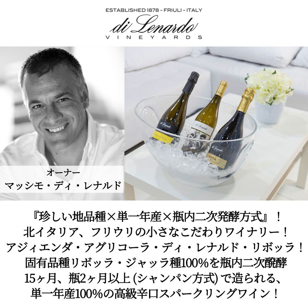 他の画像を見る リボッラ ジャッラ ブリュット メトド クラッシコ 2022 アジィエンダ アグリコーラ ディ レナルド 瓶内二次発酵式 (シャンパーニュ方式)Ribolla Gialla Brut Metodo Classico 2022 白ワイン スパークリング イタリア 辛口 当店特別価格 ¥ 2,706 税込 カートに入れる お気に入りに登録する