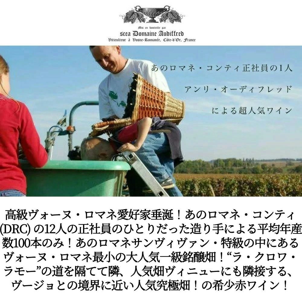 他の画像を見る ヴォーヌ ロマネ オー シャン ペルドリ 2023 蔵出し作品 ドメーヌ オーディフレッド元詰 アランメドゥ バーガウンド90-92点Vosne Romanee Aux Champs Perdrix 2023 Domaine Audiffred 赤ワイン フランス フルボディ 辛口 当店特別価格 ¥ 15,382 税込 カートに入れる お気に入りに登録する