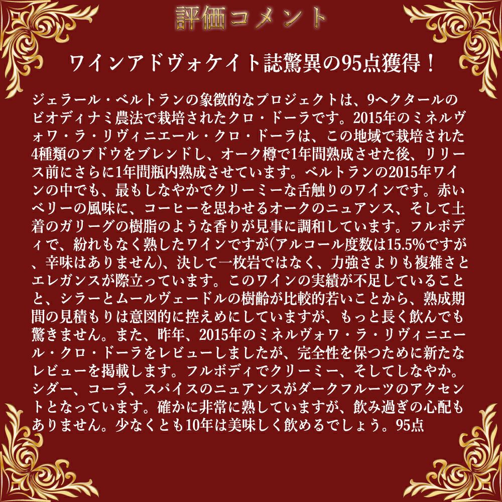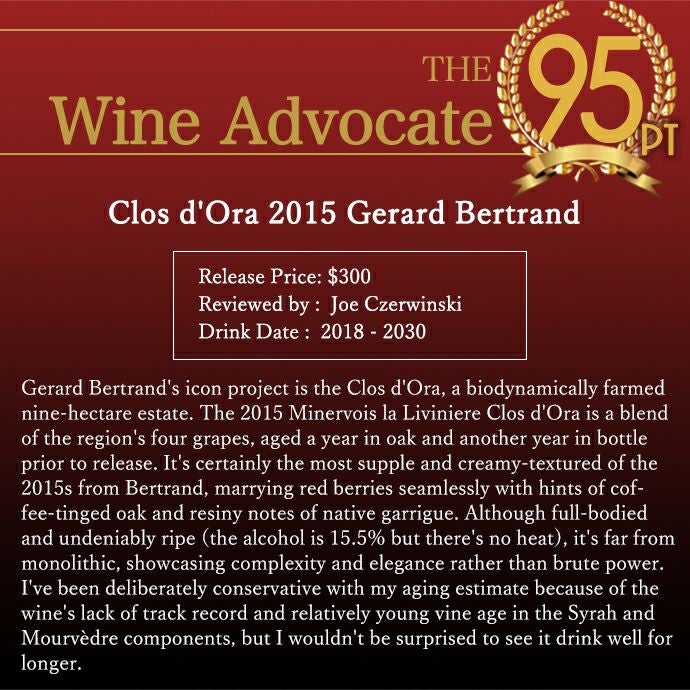 他の画像を見る クロ ドラ 2015 ジェラール ベルトラン AOPミネルヴォワ ラ リヴィニエール 自然派 度数15.5% 生産本数7908本のみ 超重厚ボトルClos d'Ora 2015 Gerard Bertrand AOP Minervois La 赤ワイン フランス フルボディ 辛口 当店特別価格 ¥ 30,305 税込 カートに入れる お気に入りに登録する