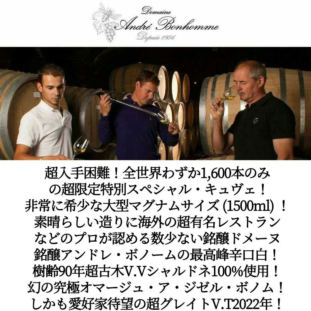 他の画像を見る 【大型ボトル】ヴィレ クレッセ オマージュ ア ジゼル ボノム 2022 年 蔵出し限定品 ドメーヌ アンドレ ボノーム元詰 正規代理店輸入品 Vire Clesse Hommage A Gisele Bonhomme 2022 Domaine Andre Bonhomme 白ワイン フランス 辛口 当店特別価格 ¥ 22,572 税込 カートに入れる お気に入りに登録する