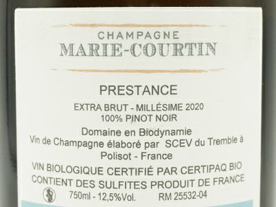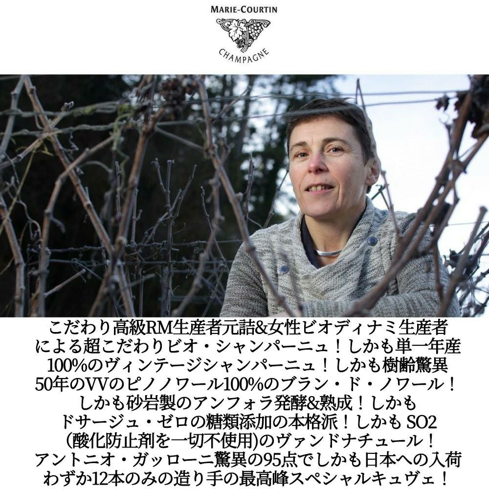 他の画像を見る マリー クルタン シャンパーニュ プレスタンス (貫禄) ブランドノワール エクストラ ブリュット ミレジメ 2020 RM(生産者元詰)Marie Courtin Champagne Prestance Extra Brut Millesime 白ワイン スパークリング シャンパン フランス 辛口 自然派 当店特別価格 ¥ 24,912 税込 カートに入れる お気に入りに登録する