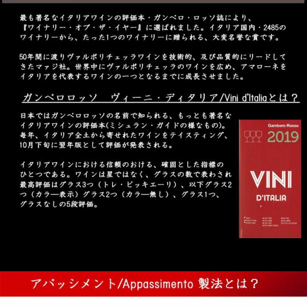 他の画像を見る 【豪華箱入】アマローネ デッラ ヴァルポリチェッラ クラッシコ コスタセラ(ヘビラベル) 2019 蔵出し品 オーク樽28-30ヶ月熟成 マァジ社Amarone della Valpolicella Classico Costasera 赤ワイン イタリア フルボディ 辛口 当店特別価格 ¥ 13,376 税込 カートに入れる お気に入りに登録する