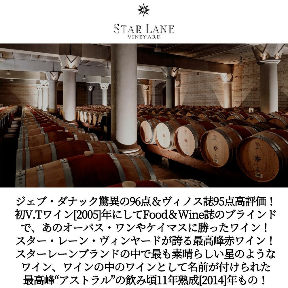 他の画像を見る スター レーン ヴィンヤード アストラル 2014 ハッピー キャニオン オブ サンタ バーバラ A.V.A 重厚ボトル STAR LANE Vineyard Astral 2014 Happy Canyon of Santa Barbara A.V.A 赤ワイン アメリカ フルボディ 辛口 当店特別価格 ¥ 13,292 税込 カートに入れる お気に入りに登録する