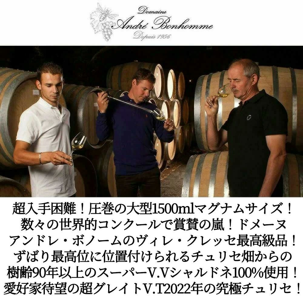 他の画像を見る 【大型ボトル】ヴィレ クレッセ チュリセ 2022 蔵出し限定生産品 ドメーヌ アンドレ ボノム元詰 正規代理店輸入品 ロウ封印キャップ 重厚ボトルVire Clesse Thurissey 2022 Domaine Andre 白ワイン フランス 辛口 当店特別価格 ¥ 16,720 税込 カートに入れる お気に入りに登録する