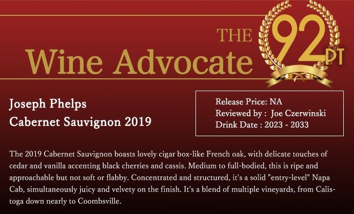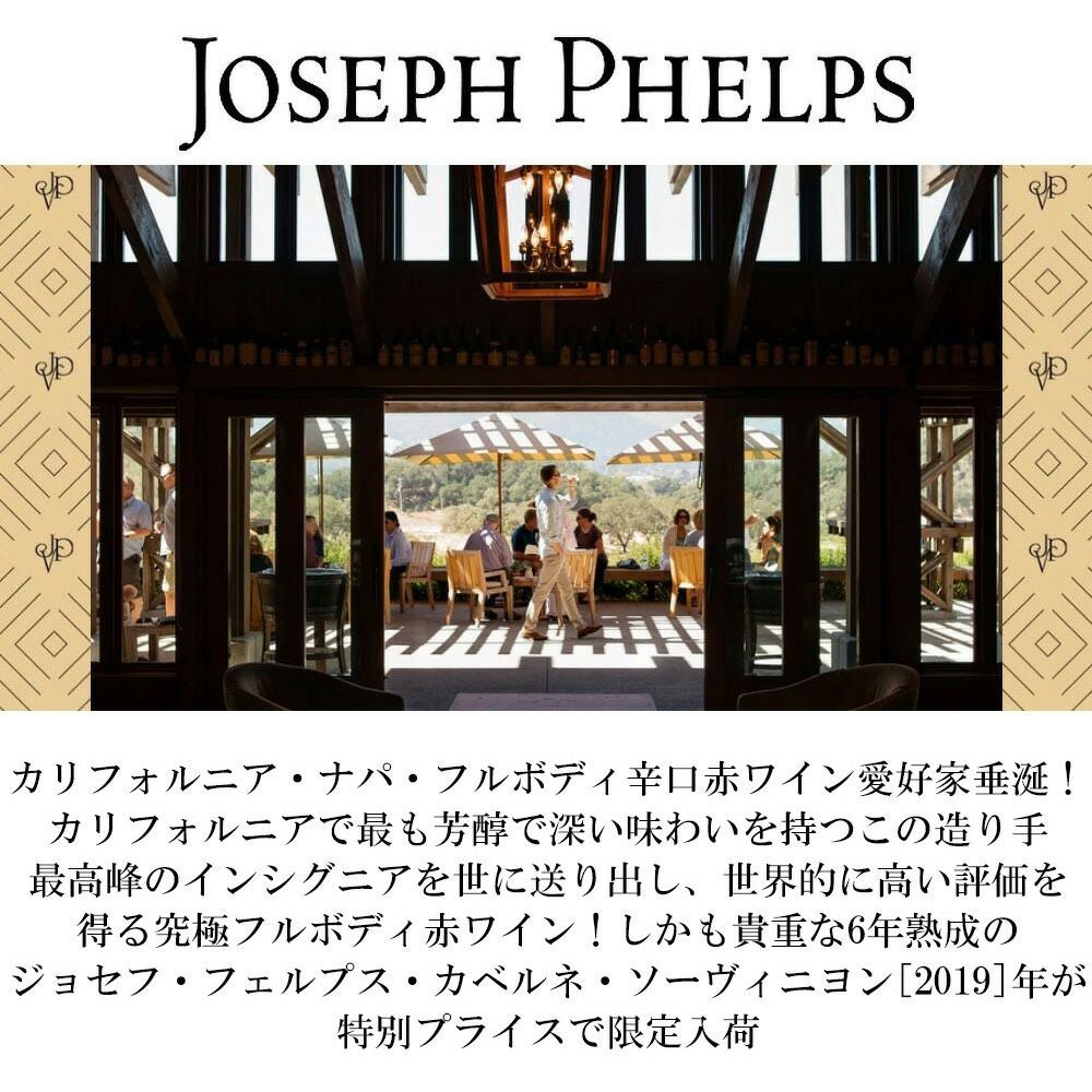他の画像を見る ジョセフ フェルプス カベルネ ソーヴィニヨン 2019 ジョセフ フェルプス ヴィンヤーズ社元詰 ナパ ヴァレー(セント ヘレナ)Joseph Phelps Cabernet Sauvignon 2019 赤ワイン アメリカ フルボディ 辛口 当店特別価格 ¥ 15,655 税込 カートに入れる お気に入りに登録する