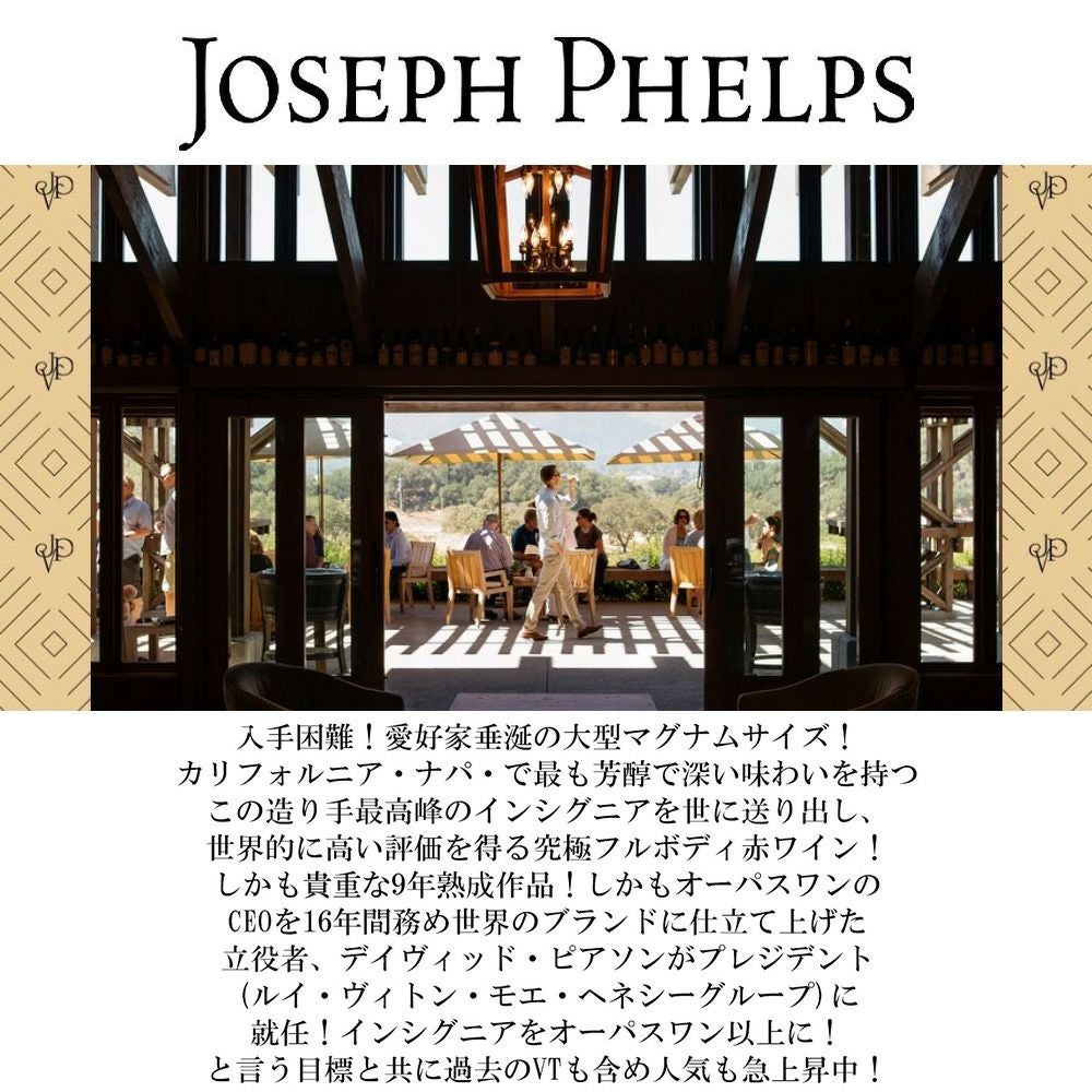 他の画像を見る 【大型サイズ】ジョセフ フェルプス カベルネ ソーヴィニヨン 2016 ジョセフ フェルプス ヴィンヤーズ社元詰 大型マグナムサイズ 1500mlMG Joseph Phelps Cabernet Sauvignon 2016 赤ワイン アメリカ フルボディ 辛口 当店特別価格 ¥ 23,747 税込 カートに入れる お気に入りに登録する