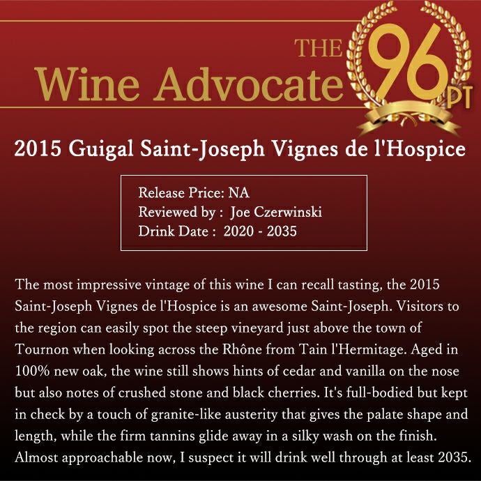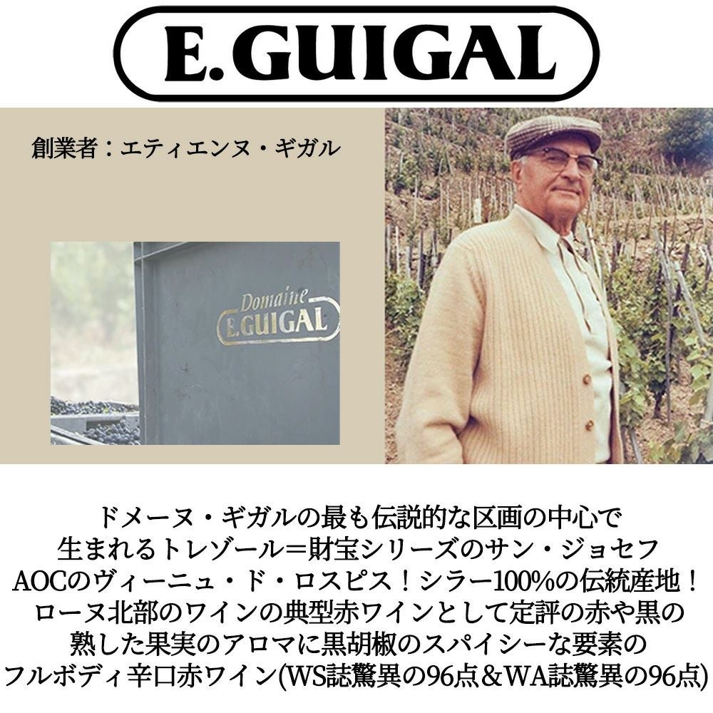 他の画像を見る サン ジョゼフ ヴィーニュ ド ロスピス ルージュ 2015 E ギガル(トレゾール=財宝シリーズ)元詰 30ケ月以上熟成 正規品 10年熟成作品!Saint Joseph Vignes de l’Hospice Rouge 2015 赤ワイン フランス フルボディ 辛口 当店特別価格 ¥ 12,996 税込 カートに入れる お気に入りに登録する