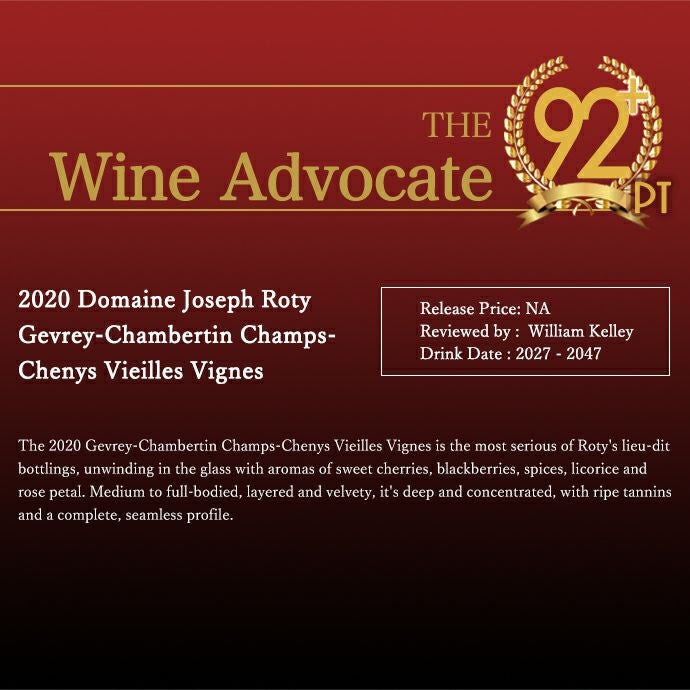 他の画像を見る ジュヴレ シャンベルタン シャン シェニ 2020 蔵出し限定品 ドメーヌ ジョセフ ロティ家元詰 AOCジュヴレ シャンベルタンGevrey Chambertin Champs Chenys 2020 Domaine Joseph Roty 赤ワイン フランス フルボディ 辛口 当店特別価格 ¥ 14,054 税込 カートに入れる お気に入りに登録する