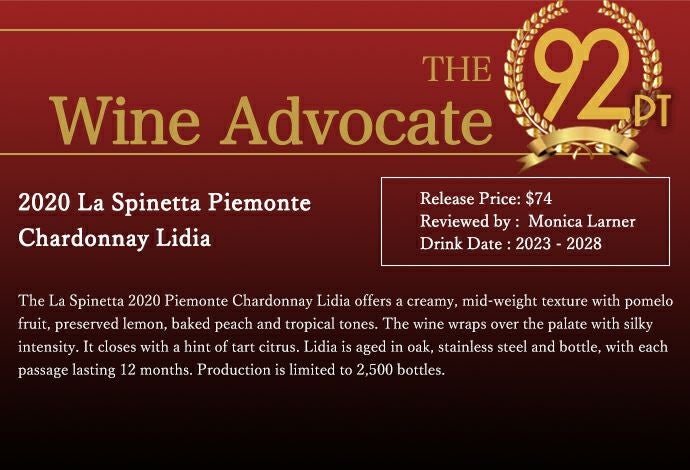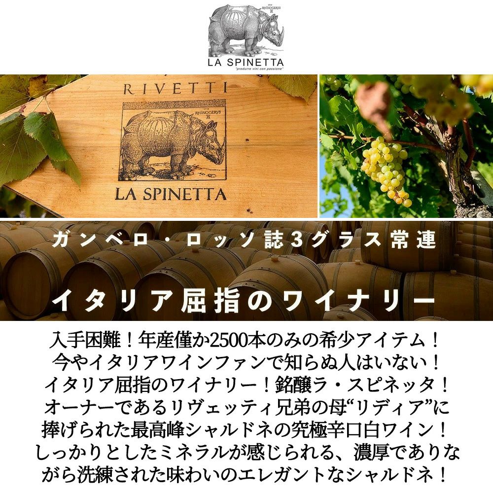 他の画像を見る ラ スピネッタ リディア シャルドネ リミテッド エディション 2020 ラ スピネッタ社 シャルドネ種100% DOCピエモンテ 白 辛口 イタリアLa Spinetta Lidia Chardonnay Limited Edition 白ワイン イタリア 辛口 当店特別価格 ¥ 13,564 税込 カートに入れる お気に入りに登録する