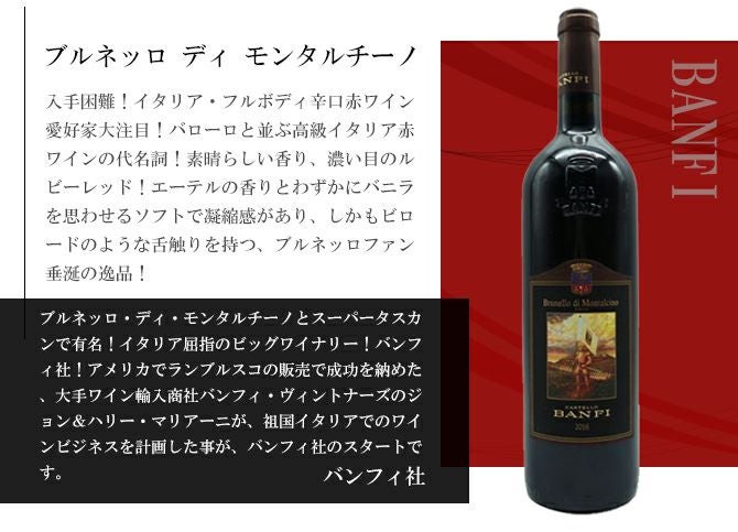 他の画像を見る 【送料無料】これぞイタリアワインの玉手箱!イタリア三大最高級辛口赤ワイン豪華飲み比べ3本セット!名門ワイナリー探訪スペシャルItalia Special 3 set (Barolo&Amarone&Brunello Di Montalcino) 赤ワイン イタリア フルボディ 辛口 送料無料 当店特別価格 ¥ 26,104 税込 カートに入れる お気に入りに登録する