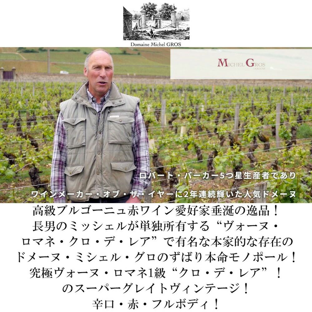 他の画像を見る ヴォーヌ ロマネ プルミエ クリュ 一級 クロ デ レア モノポール 2022 ドメーヌ ミッシェル グロ元詰 蔵出し品 AOCヴォーヌVosne Romanee 1er Cru Clos Des Reas 2022 Domaine Michel 赤ワイン フランス フルボディ 辛口 当店特別価格 ¥ 25,155 税込 カートに入れる お気に入りに登録する