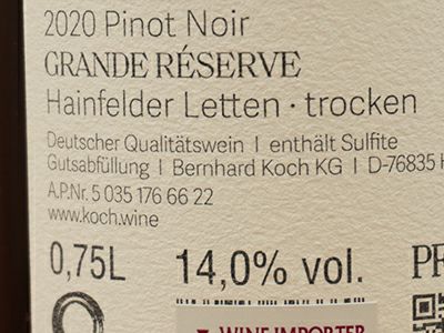 他の画像を見る ハインフェルダー レッテン ピノ ノワール グランド レゼルヴ トロッケン 2020 蔵出し作品 ヴァイングート ベルンハルト コッホ元詰Hainfelder Letten Pinot Noir Grande Reserve Trocken 2020 Weingut Bernhard Koch 赤ワイン ドイツ フルボディ 辛口 当店特別価格 ¥ 12,046 税込 カートに入れる お気に入りに登録する