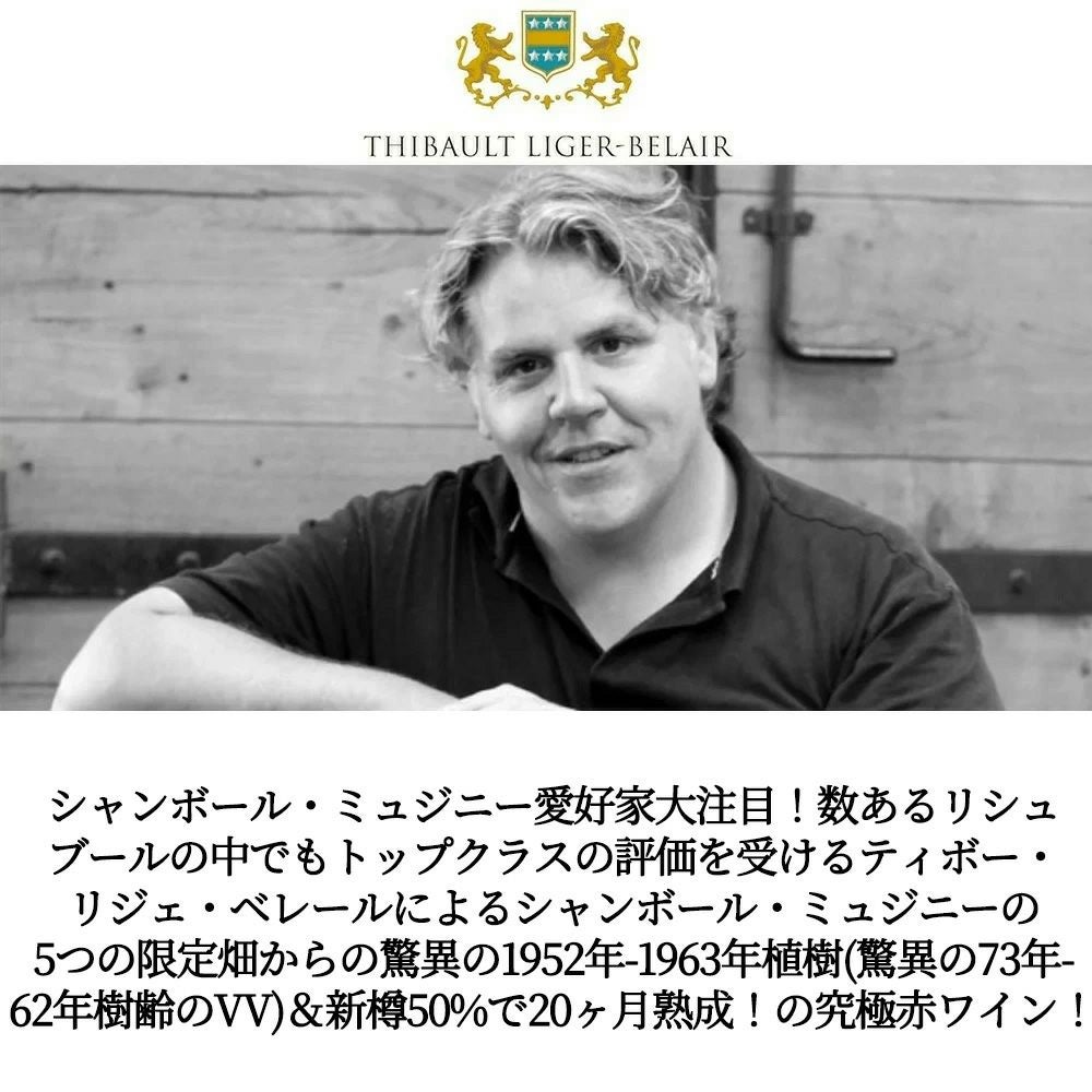 他の画像を見る シャンボール ミュジニー ヴィエイユ ヴィーニュ 2022 ドメーヌ ティボー リジェ ベレール AOC 自然派 JM驚異の89-91点 重厚ボトルChambolle-Musigny Vieilles Vignes 2022 Domaine 赤ワイン フランス フルボディ 辛口 自然派 当店特別価格 ¥ 20,880 税込 カートに入れる お気に入りに登録する
