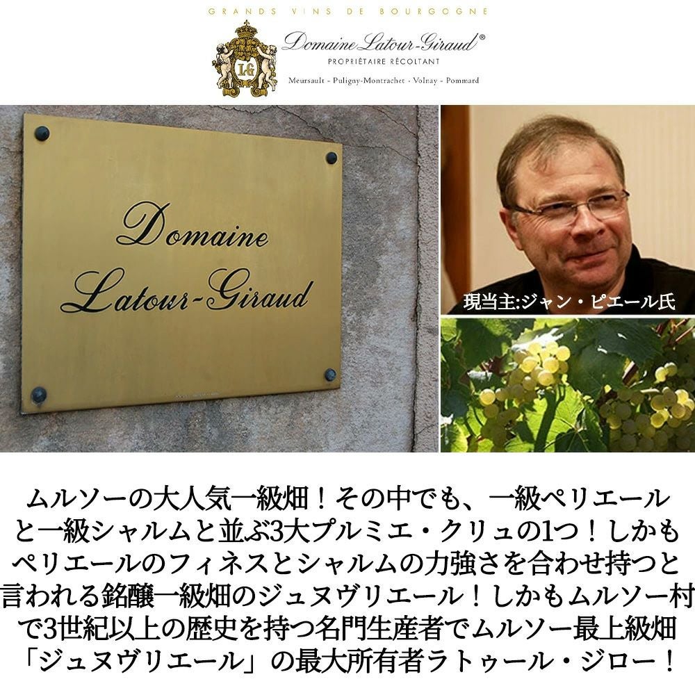 他の画像を見る ムルソー プルミエ クリュ 一級 ジュヌヴリエール 2022 蔵出し限定輸入品 ドメーヌ ラトゥール ジロー元詰 AOC ムルソー 1erMeursault 1er Cru Geneverieres 2022 DOMAINE LATOUR 白ワイン フランス 辛口 当店特別価格 ¥ 22,990 税込 カートに入れる お気に入りに登録する