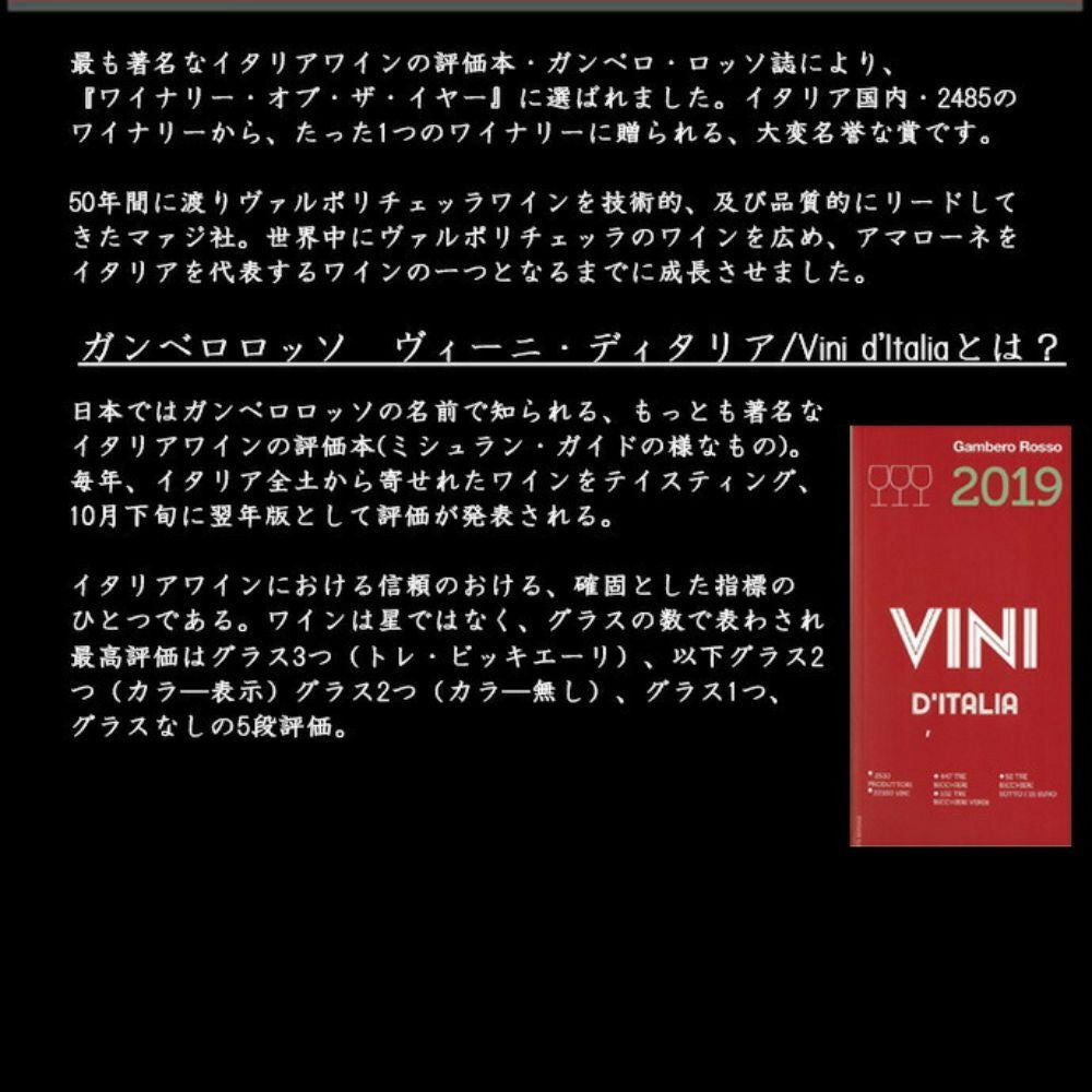 他の画像を見る セレーゴ アリギエーリ ヴァイオ アルマロン(単一畑100%) アマローネ デッラ ヴァルポリチェッラ クラッシコ 2016 マァジ社&セレーゴVaio Armaron Amarone della Valpolicella Classico 赤ワイン イタリア フルボディ 辛口 当店特別価格 ¥ 15,654 税込 カートに入れる お気に入りに登録する