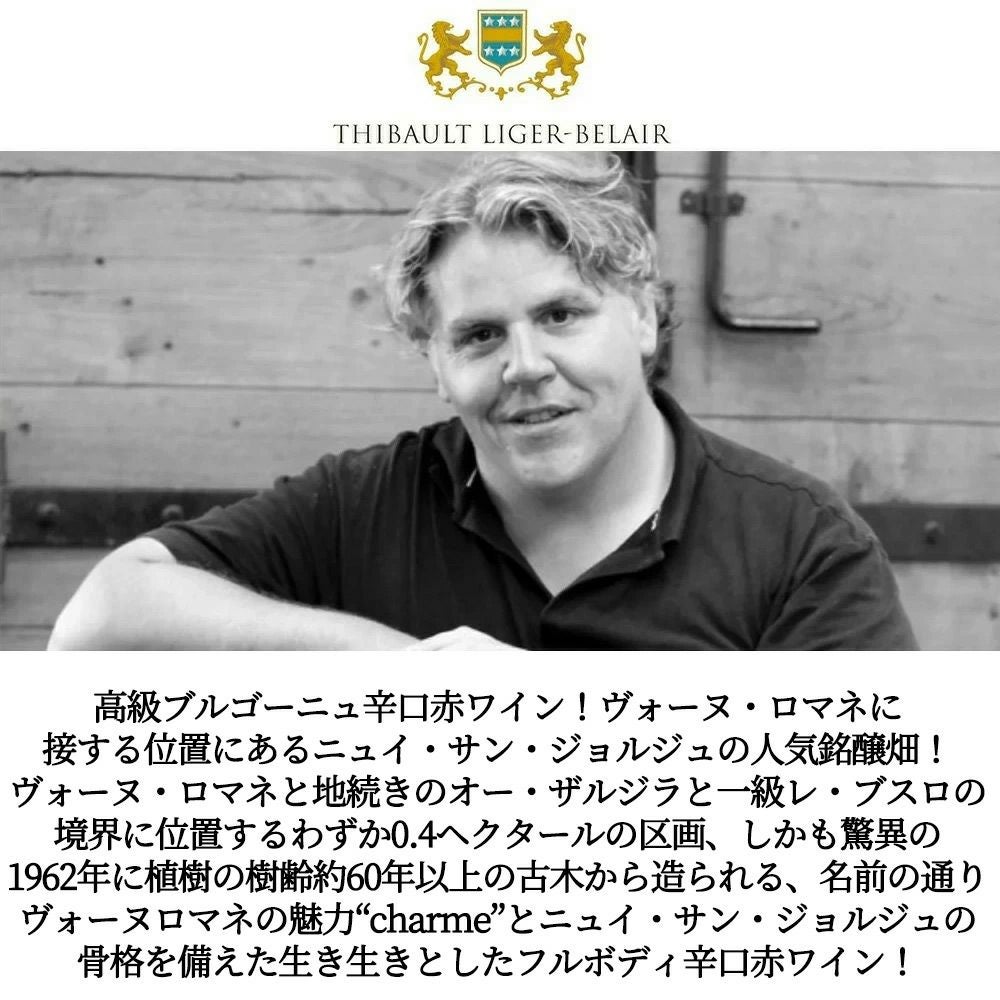 他の画像を見る ニュイ サン ジョルジュ ラ シャルモット 2022 蔵出し作品 ドメーヌ ティボー リジェ ベレール元詰 AOCニュイ サン ジョルジュ 正規品Nuits Saint Georges La Charmotte 2022 Domaine Thibault Liger-Belair 赤ワイン フランス フルボディ 辛口 当店特別価格 ¥ 15,130 税込 カートに入れる お気に入りに登録する