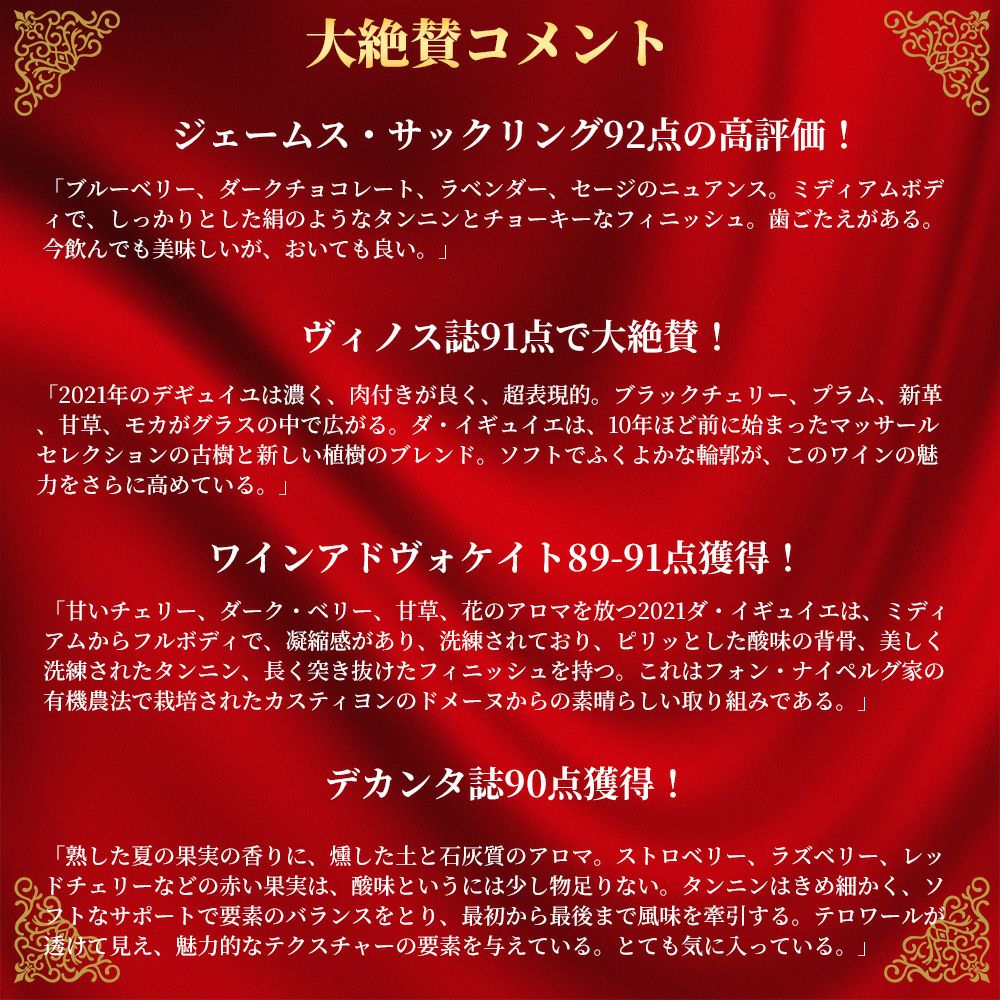 他の画像を見る シャトー デギュイユ(デギーユ) 2021 ネイペルグ伯爵&天才醸造家ステファン デュルノンクール ジェームス サックリング92点&ヴィノス誌91点Chateau D'AIGUILHE 2021 赤ワイン フランス フルボディ 辛口 当店特別価格 ¥ 4,159 税込 カートに入れる お気に入りに登録する
