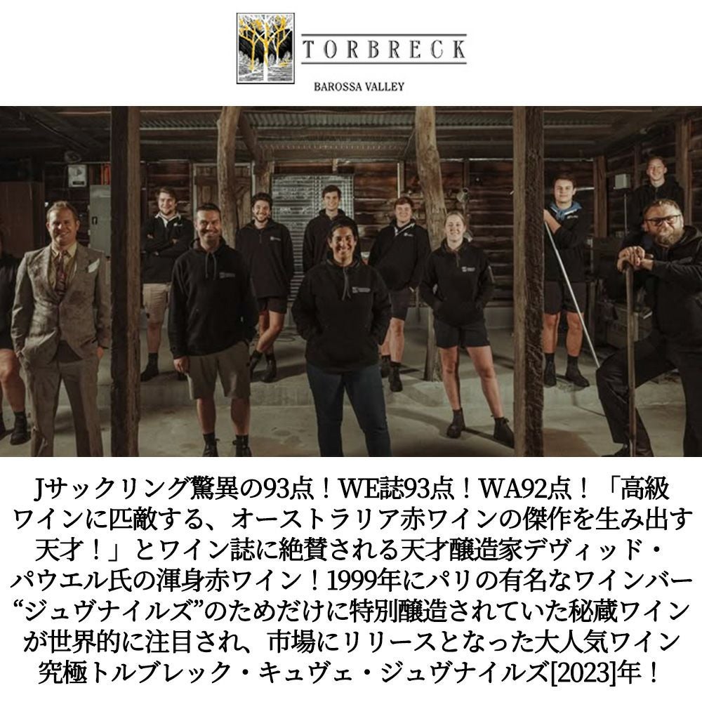 他の画像を見る トルブレック キュヴェ ジュヴナイルズ 2023 デイヴィッド パウエル(トルブレック社) バロッサ ヴァレー オーストラリア 正規品TORBRECK Cuvee Juveniles 2023 Torbreck Vintners 赤ワイン オーストラリア フルボディ 辛口 当店特別価格 ¥ 3,344 税込 カートに入れる お気に入りに登録する