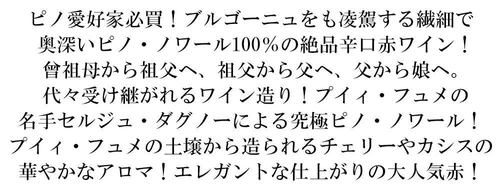 他の画像を見る セルジュ ダグノー コート ド ラ シャリテ PN レ モンテ ド サン レイ 2019 セルジュ ダグノー エ フィーユ元詰 自然派ヴァンナチュールCotes De La Charite Pinot Noir 2019 Serge Daguneneau IGP Cotes De La Charite 赤ワイン フランス フルボディ 辛口 当店特別価格 ¥ 3,344 税込 カートに入れる お気に入りに登録する