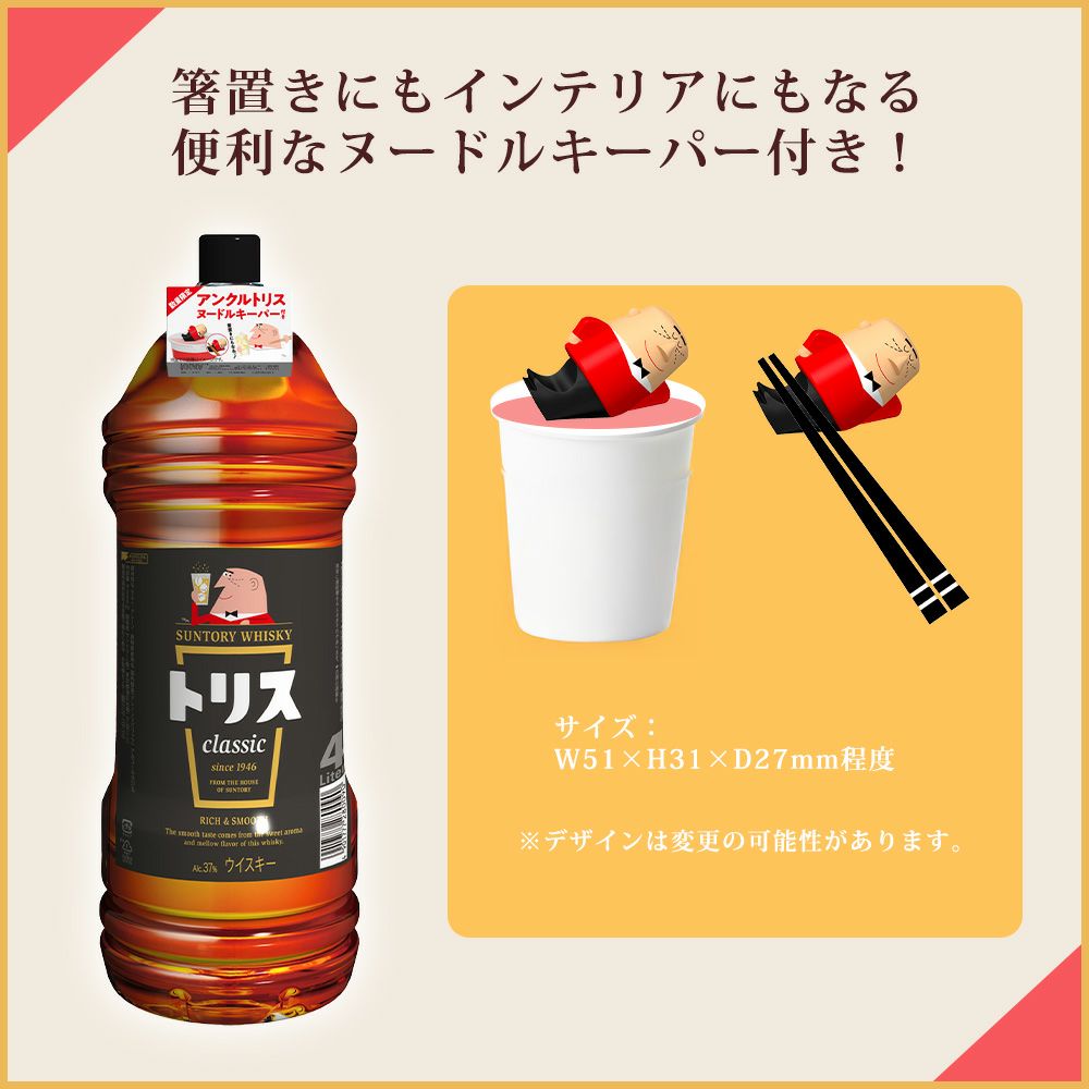 他の画像を見る 【アンクルトリスヌードルキーパー付】トリス クラシック 4000ml アンクルトリスオリジナルヌードルキーパー付き 37% サントリー ウイスキーTORYS CLASSIC WHISKY 4000ml 37% SUNTORY WHISKY ウイスキー 当店特別価格 ¥ 4,159 税込 カートに入れる お気に入りに登録する