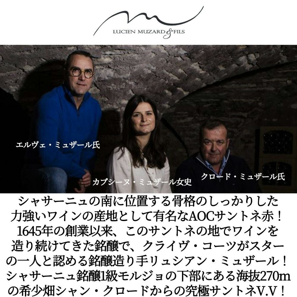 他の画像を見る サントネ シャン クロード V.V. 2023 ドメーヌ リュシアン ミュザール元詰 AOCサントネイ ルージュ 平均樹齢70年以上のVVSantenay Champs Claude V.V. 2023 Domaine Lucien 赤ワイン フランス フルボディ 辛口 当店特別価格 ¥ 5,222 税込 カートに入れる お気に入りに登録する