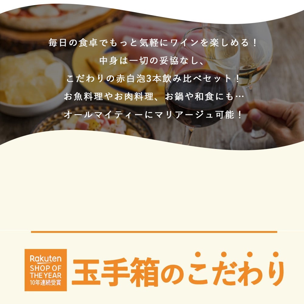 他の画像を見る 【送料無料】高級ボルドー金賞入 赤ワイン 白ワイン スパークリング 家飲みワイン3本 飲み比べ ワインセット 赤ワイン 白ワイン スパークリング 送料無料 当店特別価格 ¥ 5,414 税込 カートに入れる お気に入りに登録する