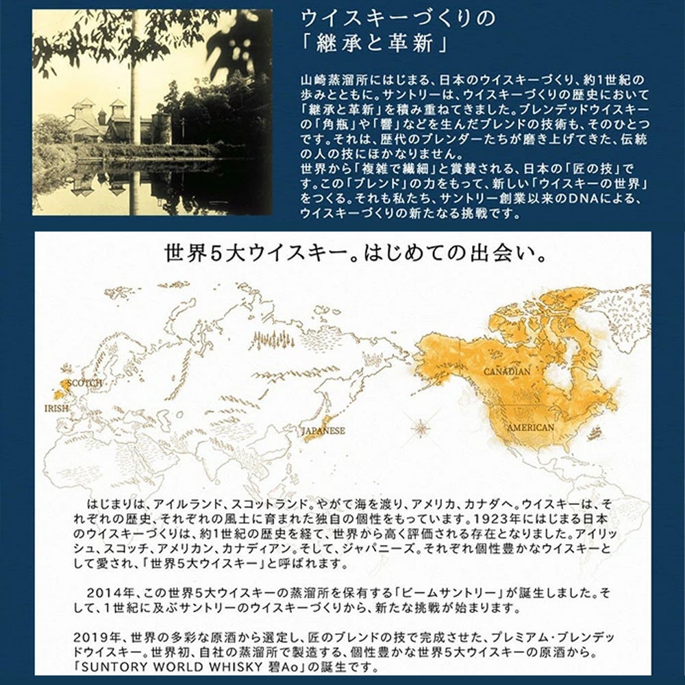 他の画像を見る 【正規品】サントリー ワールドウイスキー 碧(Ao) 700ml 43% ハードリカー wisky_ao 碧 サントリー碧 サントリーあおSuntory World Whisky A Blemd Of Five Maior Whisky Ao ウイスキー 当店特別価格 ¥ 5,413 税込 カートに入れる お気に入りに登録する