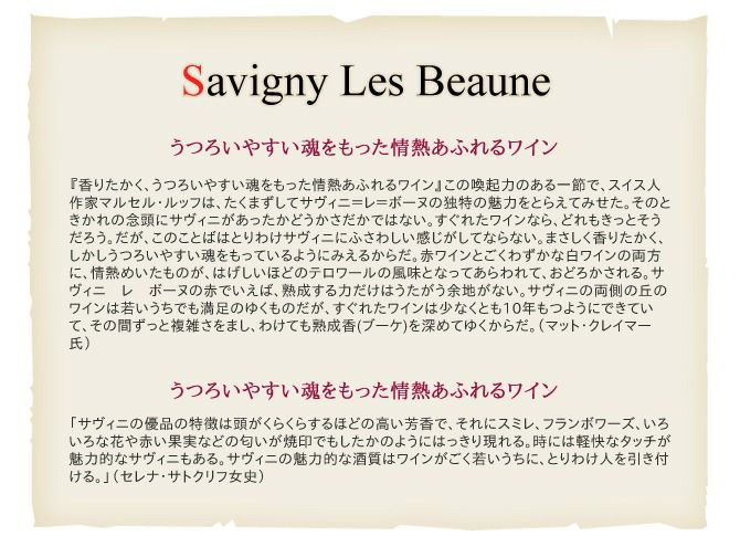 他の画像を見る サヴィニ レ ボーヌ 2023 蔵出し限定品 ドメーヌ マシャール ド グラモン元詰 AOCサヴィニ レ ボーヌSavigny Les Beaune Rouge 2023 Domaine MACHARD DE GRAMONT AOC Savigny Les Beaune Rouge 赤ワイン フランス フルボディ 辛口 当店特別価格 ¥ 4,900 税込 カートに入れる お気に入りに登録する