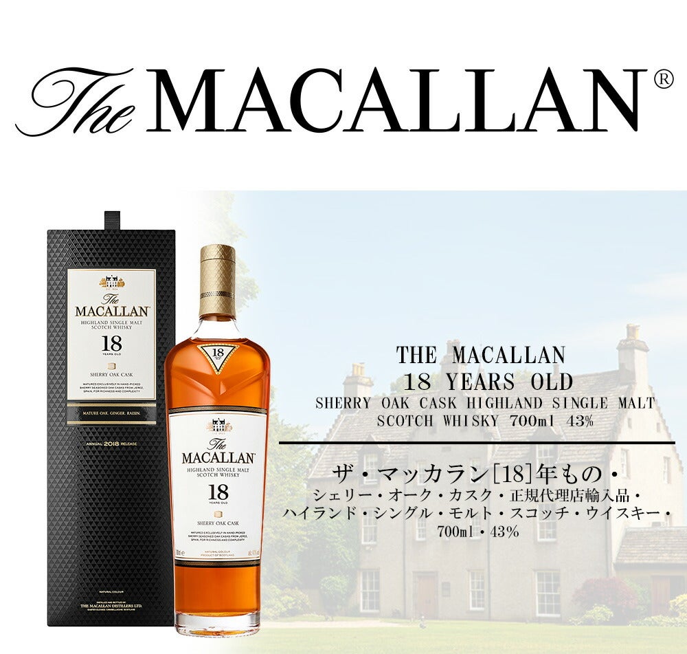 他の画像を見る マッカラン18年 【正規品 箱入】【新ラベル】ザ マッカラン 18 年もの シェリー オーク カスク 正規代理店輸入品 ハイランド シングル モルト スコッチ ウイスキー 700ml 43%THE MACALLAN 18 YEARS OLD SHERRY OAK CASK HIGHLAND SINGLE MALT SCOTCH WHISKY 700ml 43% ウイスキー 当店特別価格 ¥ 52,041 税込 カートに入れる お気に入りに登録する