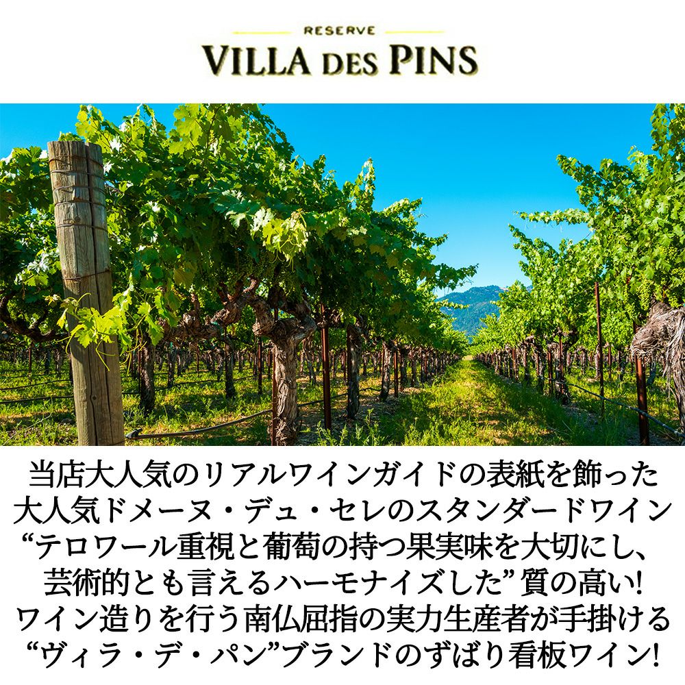 他の画像を見る ヴィラ デ パン ブラン 白 2022年 IGPペイ ドック 生産者元詰ワイン 当店大人気のリアルワインガイドの表紙を飾ったドメーヌ デュ セレのスタンダードワインVilla des Pins Blanc 2022 IGP Pays d'Oc【eu_ff】 白ワイン フランス 辛口 当店特別価格 ¥ 1,089 税込 カートに入れる お気に入りに登録する