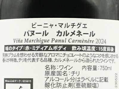他の画像を見る 【玉手箱太っ腹!!今回限り12本ご購入で送料無料】ビニャードス エラスリス オバリェ パヌール カルメネール[2024]年(コルチャグア ヴァレーD O)(スクリューキャップ)Vinedos Errazuriz Ovalle PANUL Carmenere[2024] 当店特別価格 ¥ 804 税込 カートに入れる お気に入りに登録する
