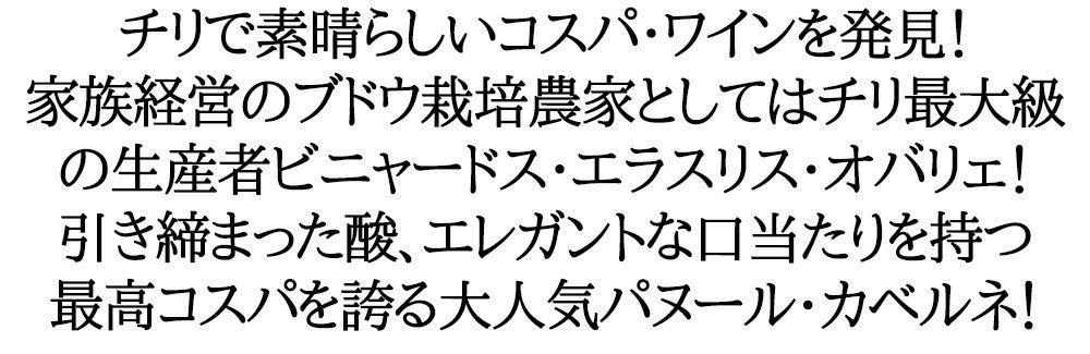 他の画像を見る ビニャードス エラスリス オバリェ パヌール カベルネ ソーヴィニヨン 2024Vinedos Errazuriz Ovalle Panul Cabernet Sauvignon 2024 赤ワイン チリ ミディアムボディ 辛口 当店特別価格 ¥ 804 税込 カートに入れる お気に入りに登録する
