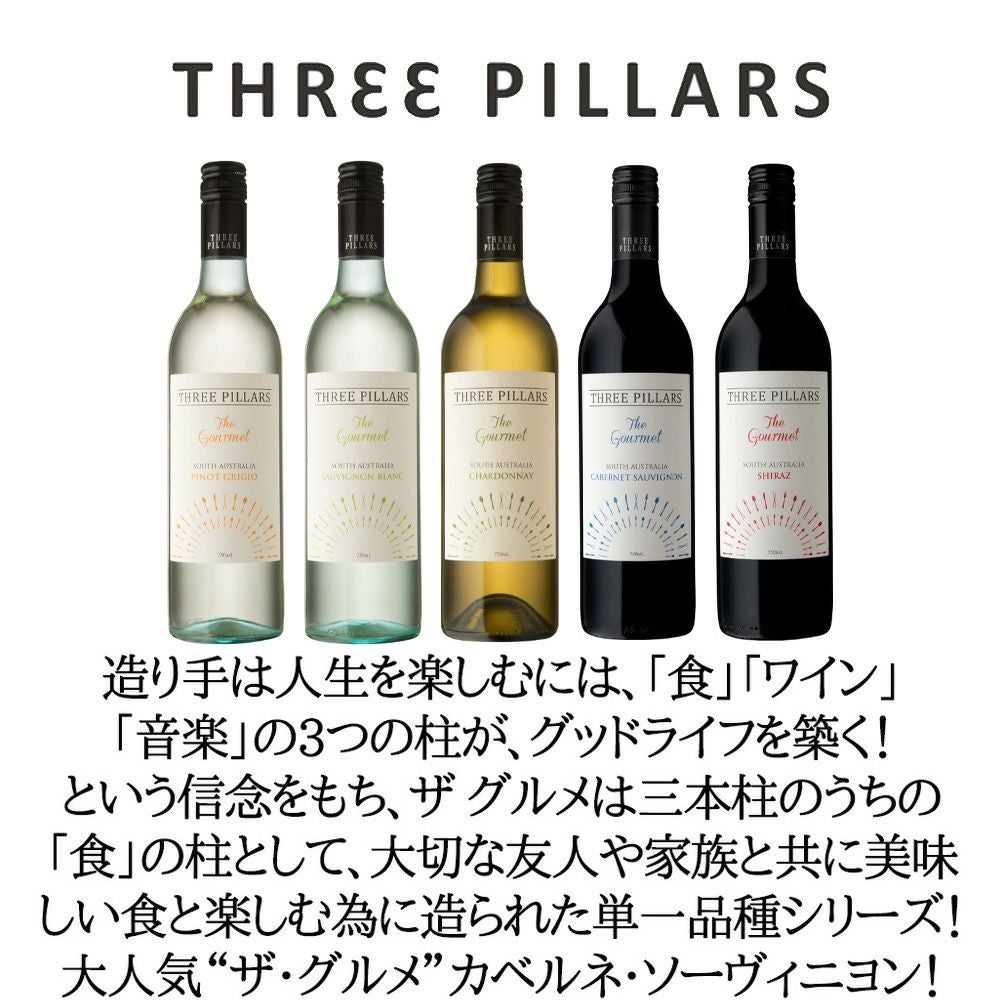 他の画像を見る スリー ピラーズ ザ グルメ カベルネ ソーヴィニヨン 2021年 南オーストラリア産 カベルネ ソーヴィニヨン100%THREE PILLARS The Gourmet Cabernet Sauvignon 2021 赤ワイン オーストラリア ミディアムボディ 辛口 当店特別価格 ¥ 1,086 税込 カートに入れる お気に入りに登録する