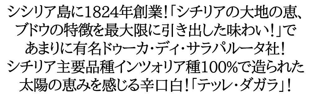 他の画像を見る テッレ ダガラ ビアンコ 2023 ドゥーカ ディ サラパルータ社 インツォリア種100% テッレ シチリアーネIGT 750ml 辛口白ワインTerre Dagala Bianco 2023 Duca Di Salaparuta【eu_ff】 白ワイン イタリア 辛口 当店特別価格 ¥ 1,097 税込 カートに入れる お気に入りに登録する