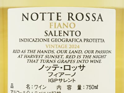 他の画像を見る ノッテ ロッサ フィアーノ 2024 テッレディサヴァ ノッテ ロッサ フィアーノ種100% IGPサレント 白ワイン イタリアワイン 辛口Notte Rossa Fiano 2024 IGP Salent 白ワイン イタリア 辛口 当店特別価格 ¥ 992 税込 カートに入れる お気に入りに登録する