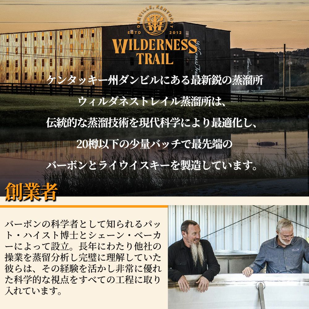 他の画像を見る 【正規品】ウィルダネストレイル ライ ウイスキー ケンタッキー ストレート ウイスキー 750ml 50%WILDERNESSTRAIL RYE WHISKY KENTUCKY STRAIGHT WHISKY 750ml 50% ウイスキー アメリカ 当店特別価格 ¥ 7,999 税込 カートに入れる お気に入りに登録する