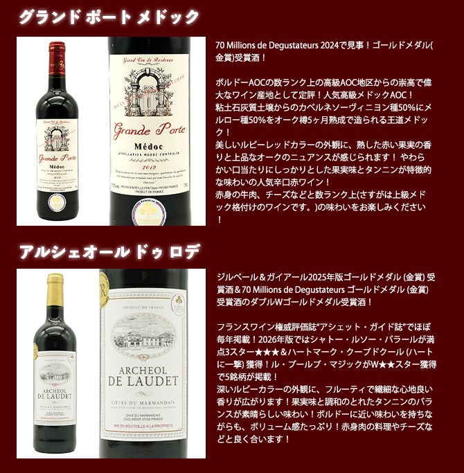 他の画像を見る 【送料無料】うきうき高級ボルドー人気急上昇地域!厳選 豪華金賞受賞酒 究極赤ワイン飲み比べ6本セット SSspecial03mar13_food ワインセット 赤ワイン ワインセット フランス 送料無料 当店特別価格 ¥ 7,294 税込 カートに入れる お気に入りに登録する