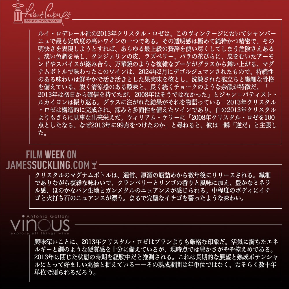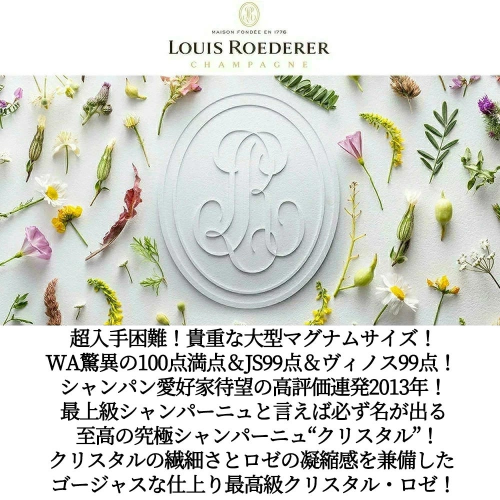 他の画像を見る 【大型マグナム】ルイ ロデレール クリスタル ロゼ ヴィンテージ 2013 豪華ギフト箱入 AOCミレジム ロゼ シャンパーニュ 1500ml Louis Roederer CRISTAL ROSE Millesime 2013 DX Original Gift Box スパークリング シャンパン ロゼ フランス 辛口 当店特別価格 ¥ 208,791 税込 カートに入れる お気に入りに登録する