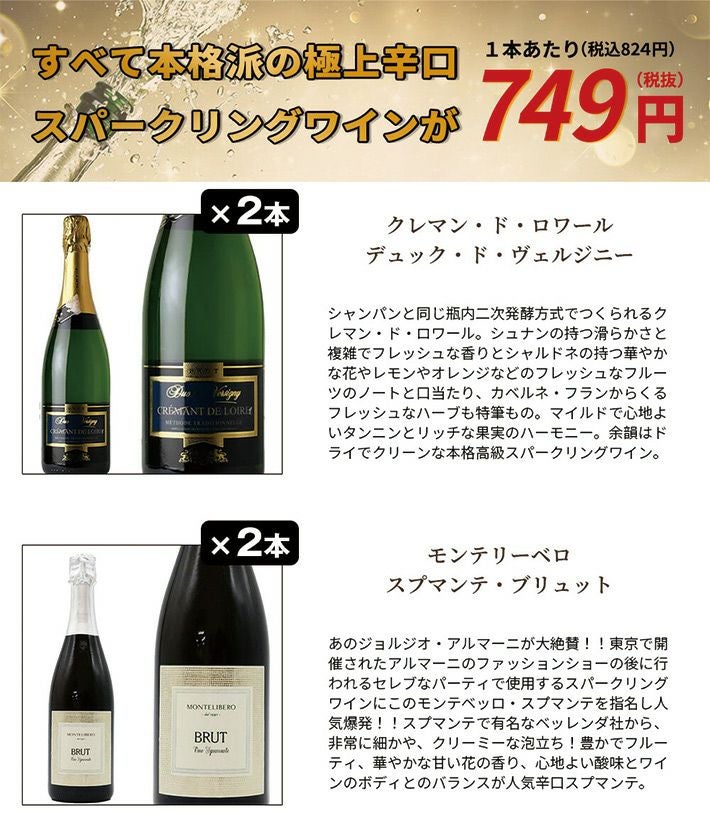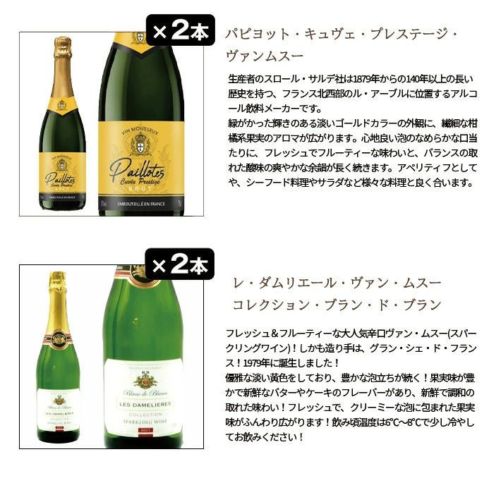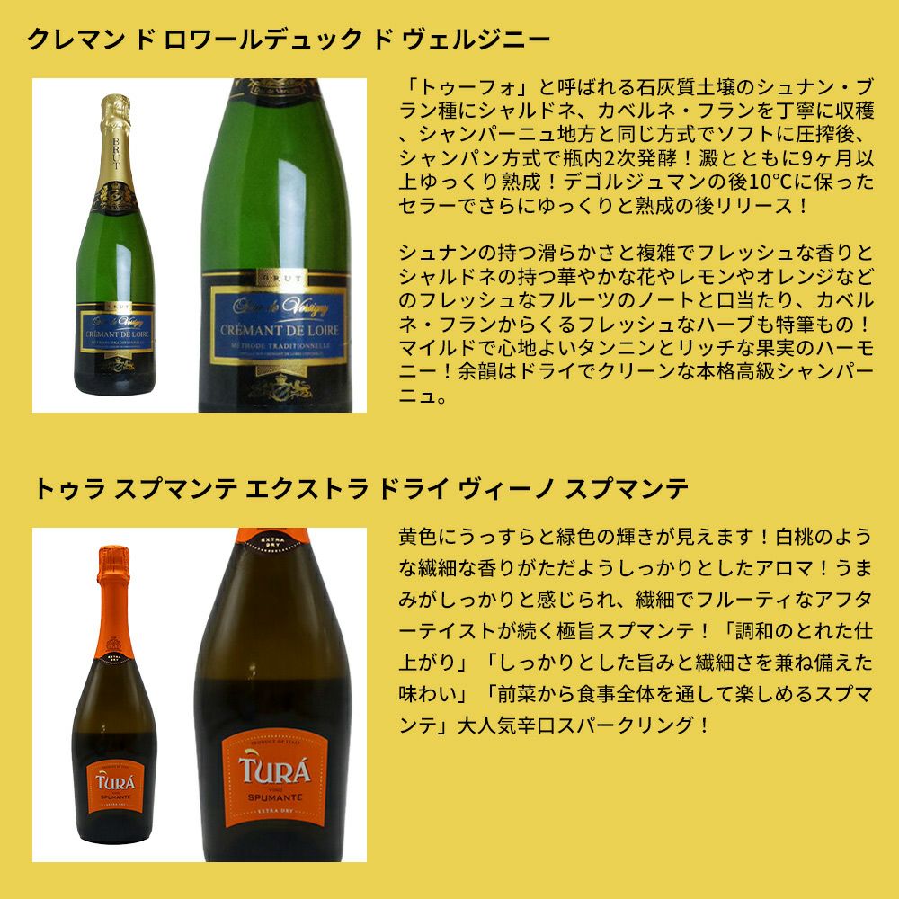 他の画像を見る 送料無料】玉手箱厳選!すべて本格派の極上辛口泡12本セット ワインセット スパークリング(6種類×各2)Tamatebako Select Sparkling 12 Set スパークリング ワインセット 送料無料 当店特別価格 ¥ 9,384 税込 カートに入れる お気に入りに登録する