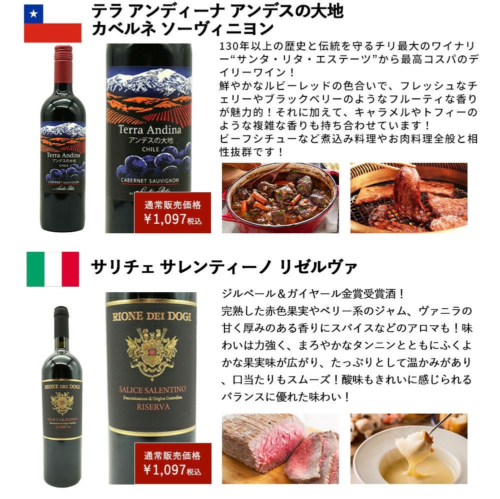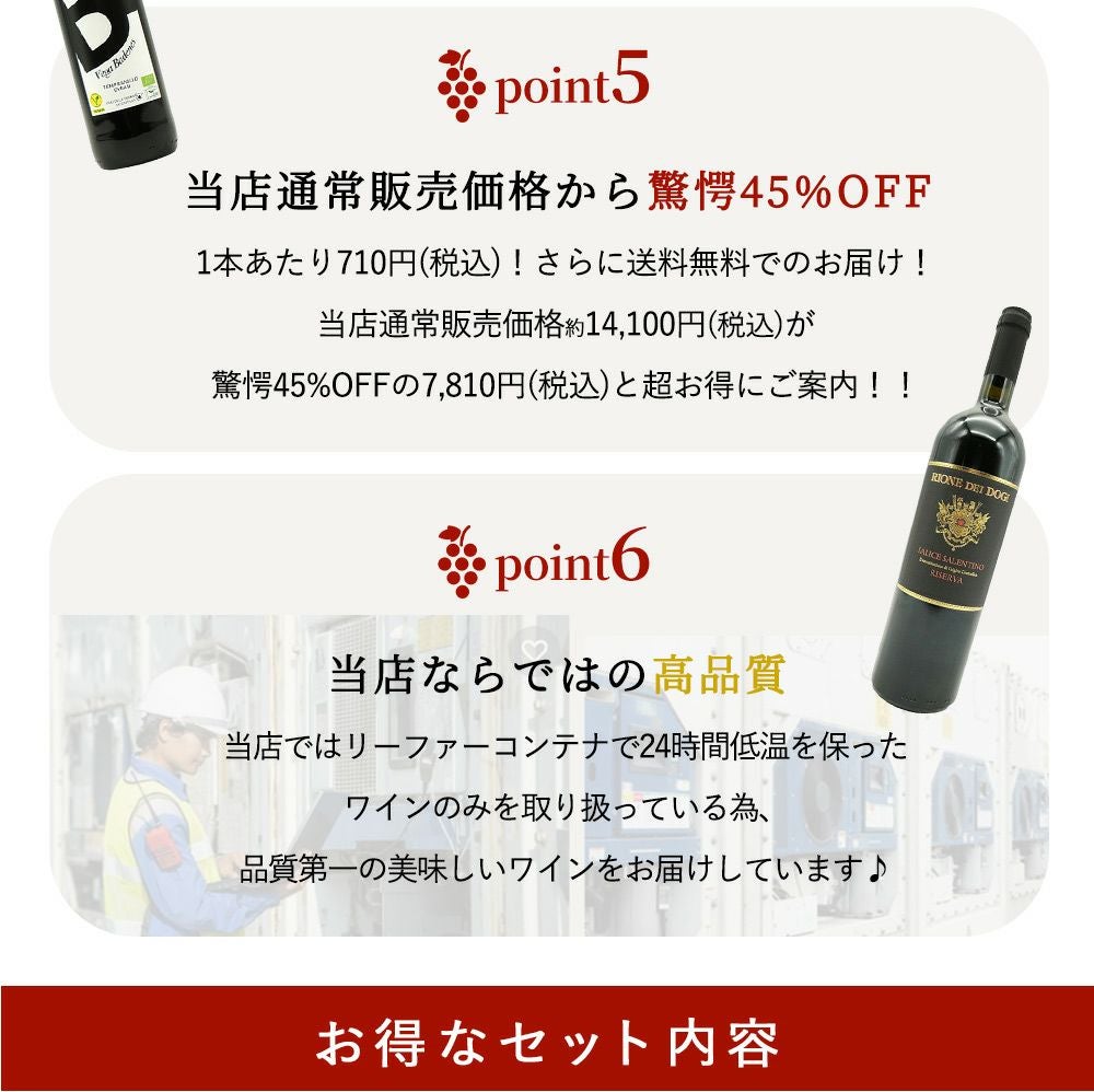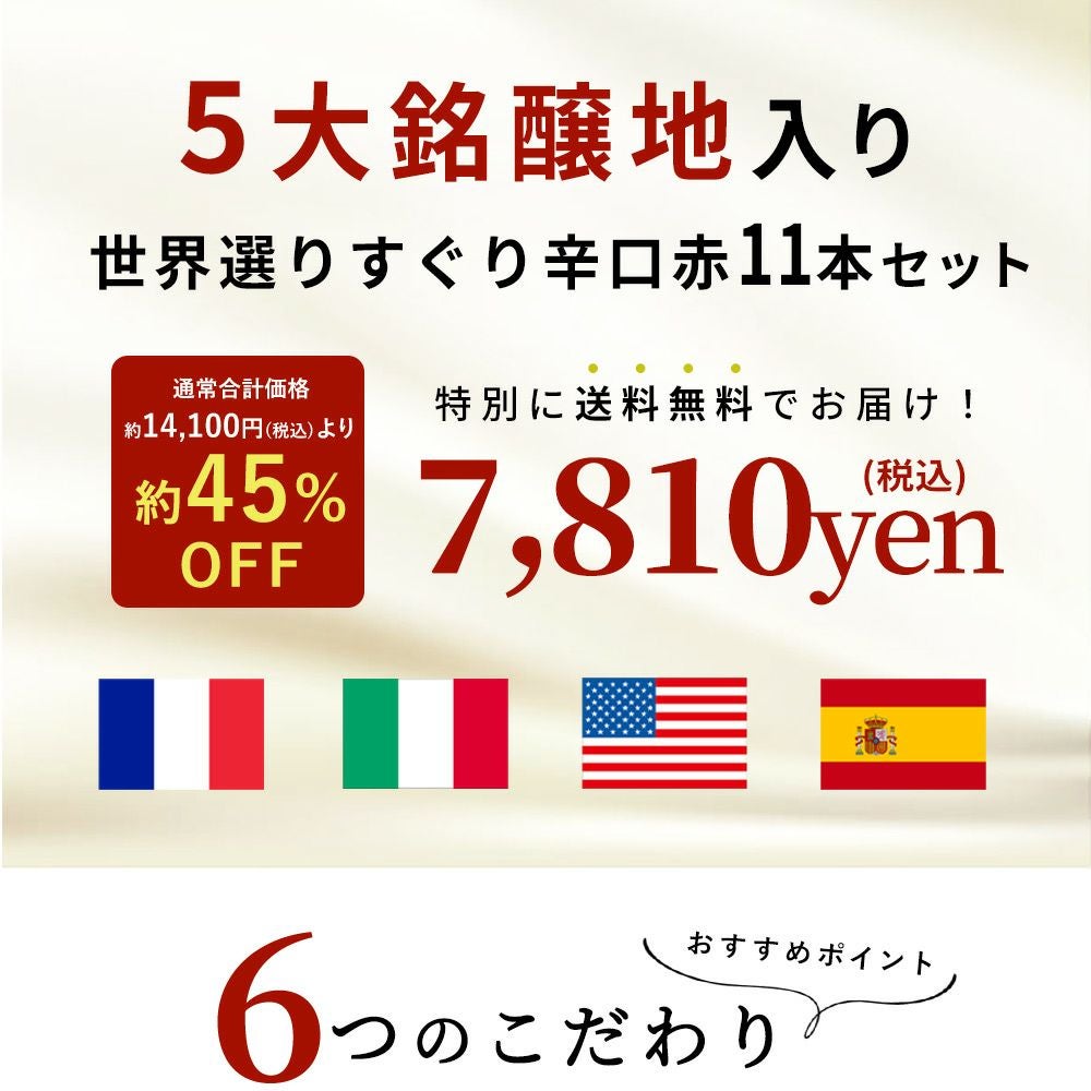 他の画像を見る 【送料無料】ワイン ワインセット 超厳選!ランク上の驚異のフルボディ極上赤ワイン6本セット【ワインセット】【ワイン ギフト】【wine】【赤ワイン】 赤ワイン フランス イタリア スペイン アメリカ チリ フルボディ 送料無料 当店特別価格 ¥ 8,339 税込 カートに入れる お気に入りに登録する