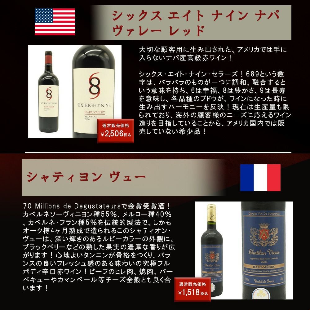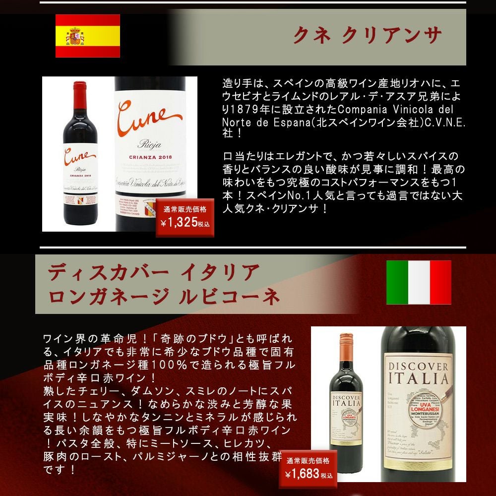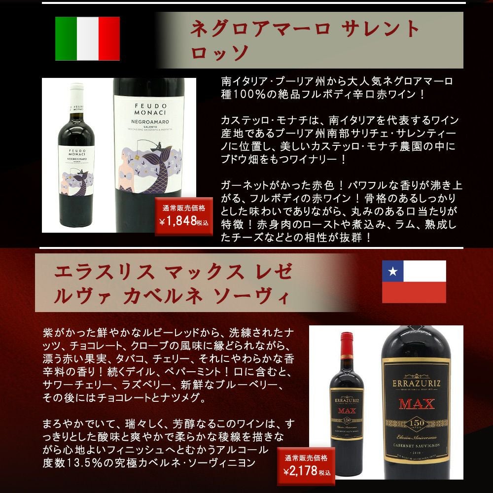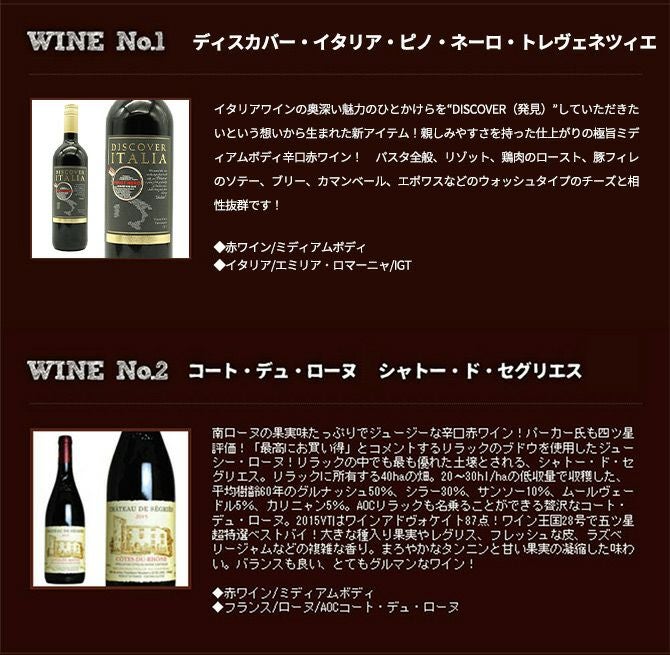 他の画像を見る 【送料無料】ワイン ワインセット 超厳選!ランク上の驚異のフルボディ極上赤ワイン6本セット【ワインセット】【ワイン ギフト】【wine】【赤ワイン】 赤ワイン フランス イタリア スペイン アメリカ チリ フルボディ 送料無料 当店特別価格 ¥ 8,339 税込 カートに入れる お気に入りに登録する