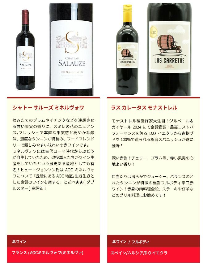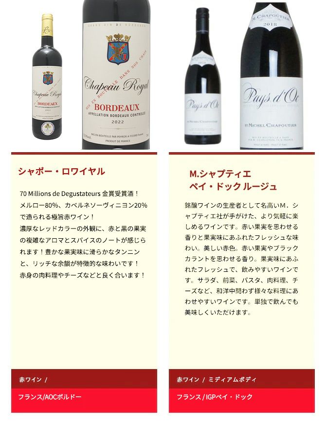 他の画像を見る 【送料無料】SOY10年連続受賞!うきうきワインがセレクト!5冠金賞入り&格上AOC規格&当たり年入り!豪華ボルドー・金賞受賞10本セット[残り2本同梱可能] ワインセット 赤ワイン ワインセット フランス 送料無料 当店特別価格 ¥ 9,384 税込 カートに入れる お気に入りに登録する