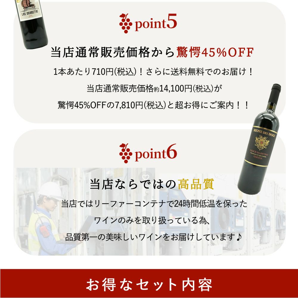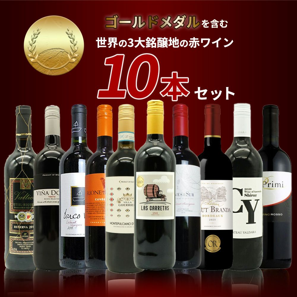 他の画像を見る 【送料無料】SOY 10年連続受賞店舗が厳選!日頃の感謝をこめて!金賞を含む世界の3大銘醸地の赤ワイン10本セット! ワインセット 赤ワイン ワインセット 送料無料 当店特別価格 ¥ 7,294 税込 カートに入れる お気に入りに登録する