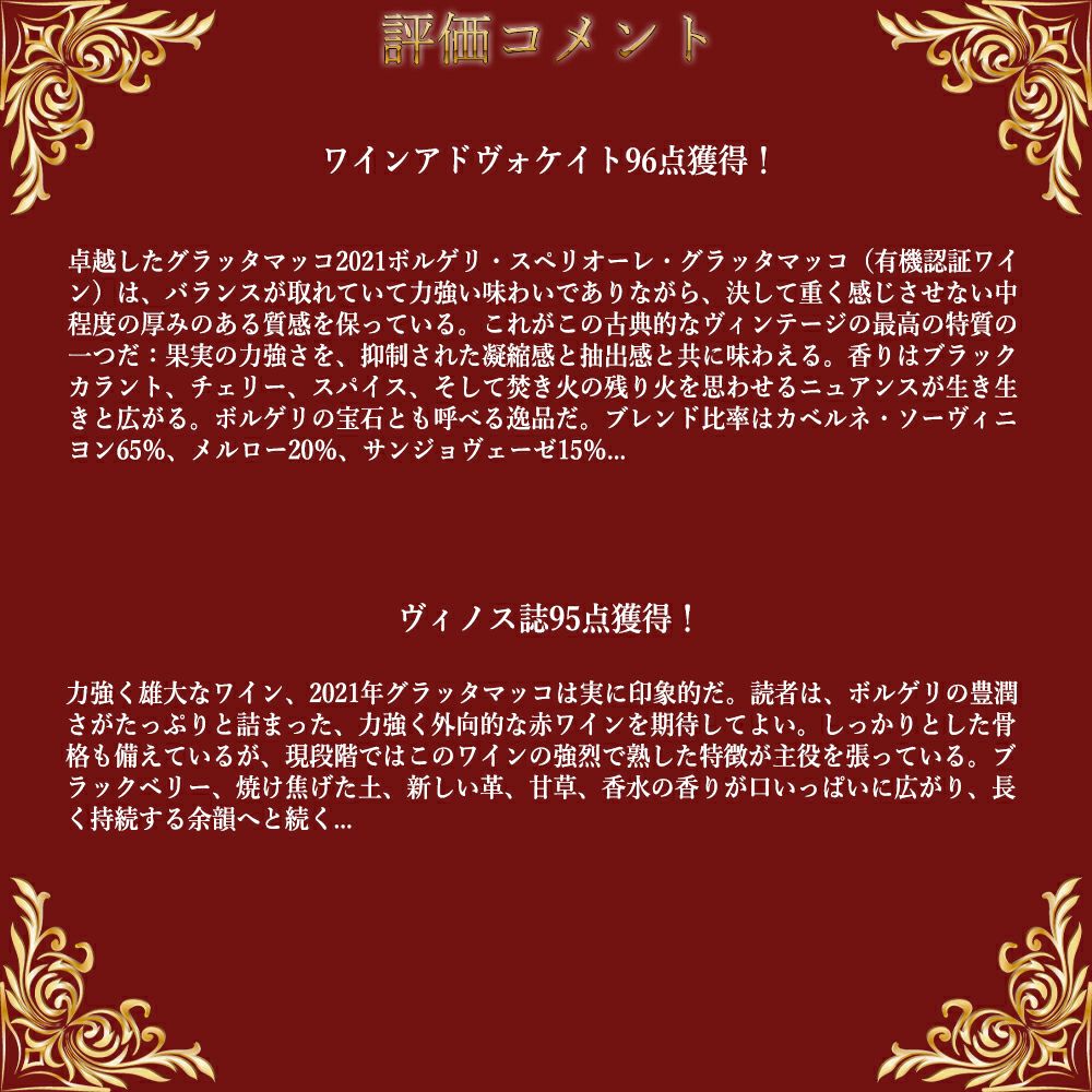 他の画像を見る シャトー デュルフォール ヴィヴァン 2022 メドック グラン クリュ クラッセ 公式格付第2級 AOCマルゴー ジェームス サックリング96-97点Chateau Durfort-Vivens 2022 AOC Margaux 赤ワイン フランス フルボディ 辛口 当店特別価格 ¥ 11,474 税込 カートに入れる お気に入りに登録する