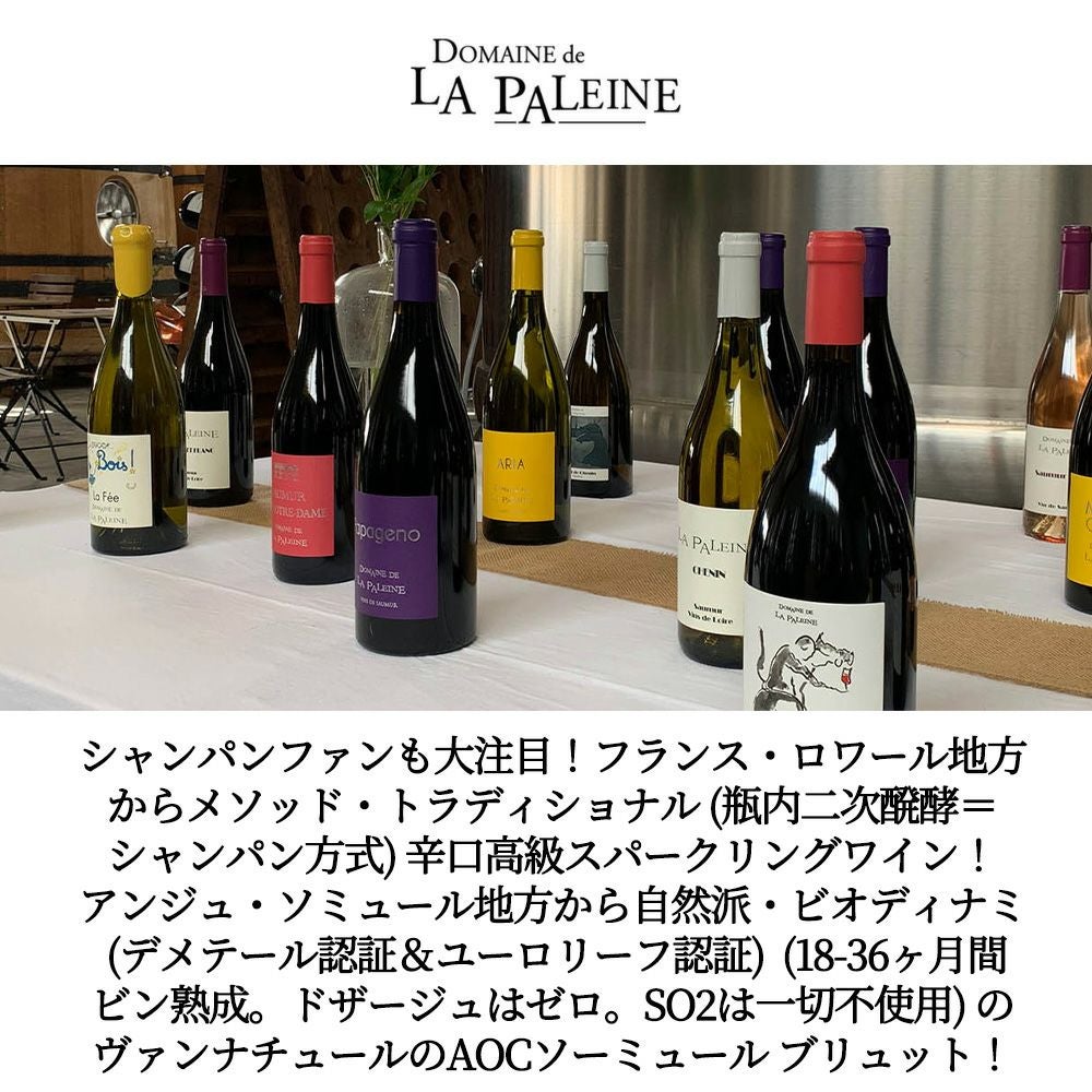 他の画像を見る ソーミュール ブリュット メソッド トラディショナル NV ドメーヌ ド ラ パレーヌ元詰 自然派 ビオディナミ ヴァンナチュール 12.5%Saumur Brut Domaine de la Paleine AOC Saumur Brut シャンパン フランス 辛口 自然派 当店特別価格 ¥ 3,260 税込 カートに入れる お気に入りに登録する